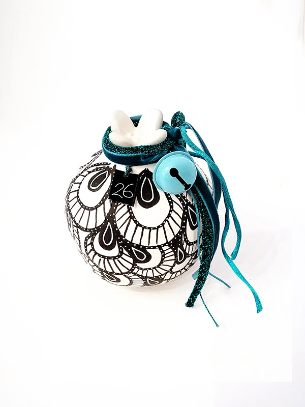 Μοναδικό κεραμικό ρόδι ζωγραφισμένο στο χέρι με doodles.