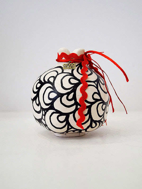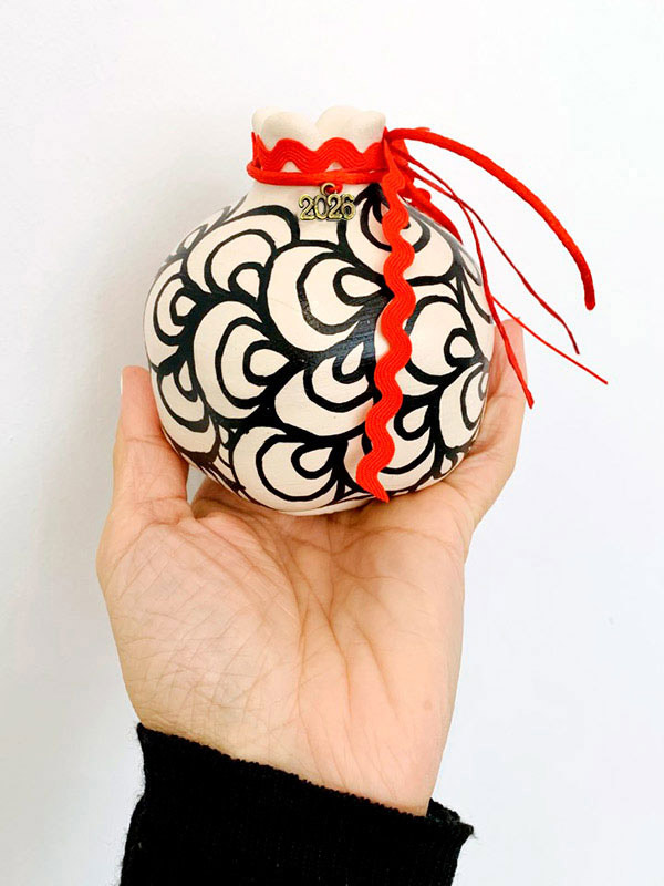 Μοναδικό κεραμικό ρόδι ζωγραφισμένο στο χέρι με doodles.