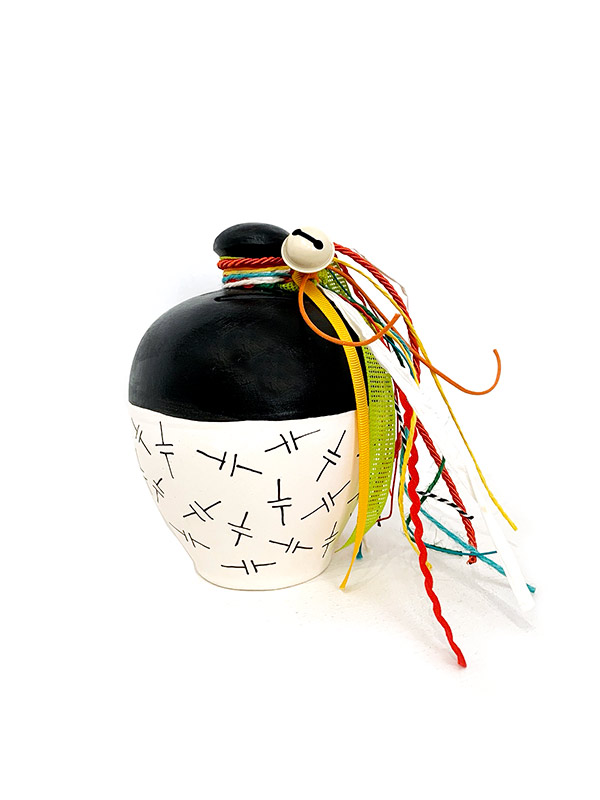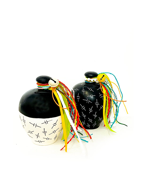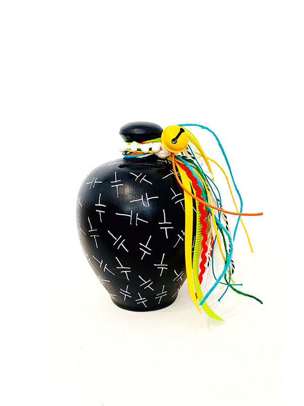 Κεραμικός κουμπαράς ζωγραφισμένος με doodles