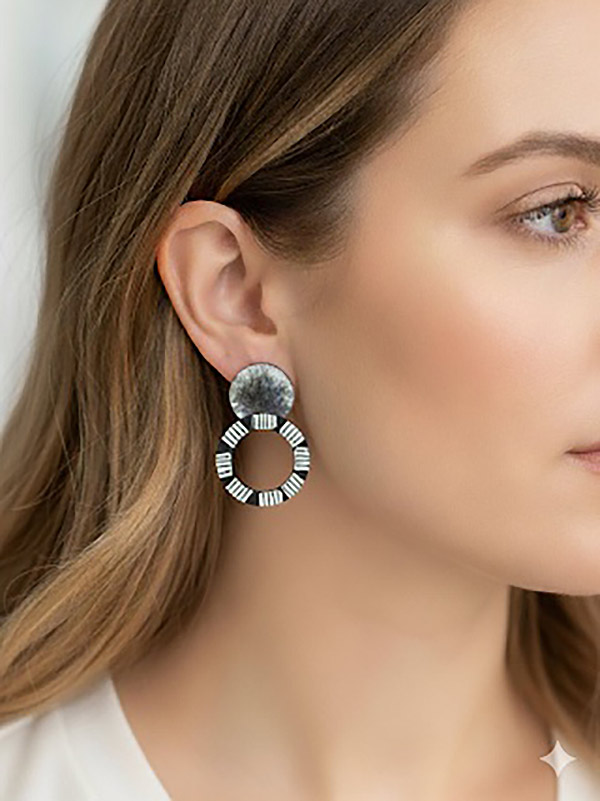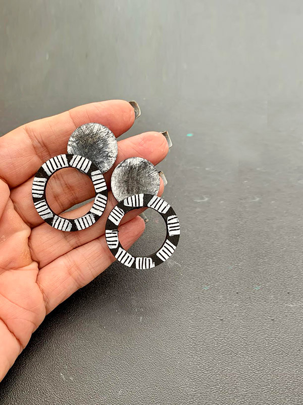 ΕARRINGS WOODEN BLACK-WHITE 01