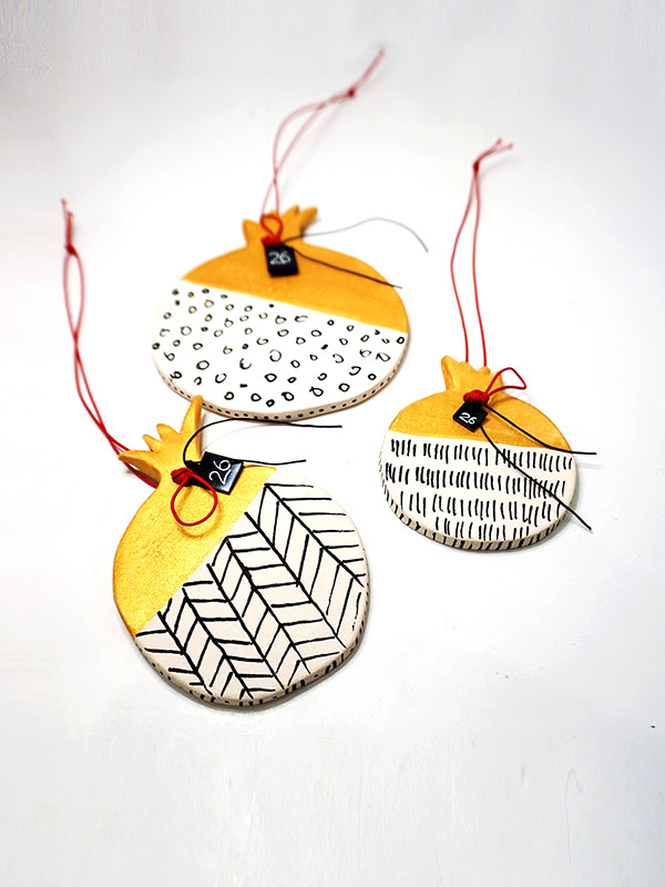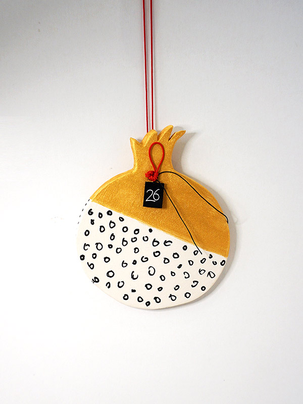 Μοναδικό κεραμικό ρόδι ζωγραφισμένο στο χέρι με doodles.